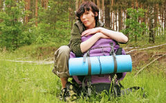 Укладывать вещи в рюкзак надо так, чтобы мягкие вещи (куртка, одеяло, белье) легли на спине ровно т плоско; более тяжелые класть на дно, более легкие — наверх. В боковые карманы укладывается все то, что может понадобиться на малых привалах (кружка, миска, завтрак, принадлежность для умывания, мешочки для коллекций). Центр тяжести груженого рюкзака должен быть внизу, а не наверху или сбоку, иначе рюкзак будет оттягивать плечи. При правильной укладке рюкзака весь груз должен опираться на крестец. Сыпучие грузы (крупа, сахар и т. п.) нельзя заворачивать в бумагу, их надо держать в специальных мешочках с завязками. Жиры, мясо класть в жестяные или алюминиевые коробки. Ношение рюкзака требует тренировки, с непривычки могут появиться ноющие боли в плечах. Надо надевать лямки на край плеча и не делать перекрестов на груди — они стесняют грудную клетку.