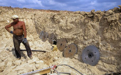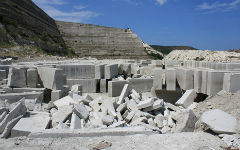 На этих де карьерах в Крыму добывают не столько штучный стендовой камень, сколько выпиливают блоки больших размеров, очень ускоряющие и удешевляющие строительство. (Сама добыча таких блоков в мировой практике — опыт уникальный). Из этих же известняков режут облицовочную плитку, добротную и привлекательную, она идет и на экспорт. В степном Крыму разрабатывается известняк-ракушечник, из него выпиливают легкий! прочный строительный камень.