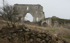 Дальше нужно идти сокращенным путем на юго-запад так, чтобы справа остался Кызкермен, т. е. Девичья крепость, имеющая сходство с Тепе-керменом, а слева, далеко в стороне — с. Кудрино и с. Верхоречье.