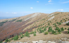 Если ночлег был возле пещер, то на утро следующего дня продолжать путь по тропке мимо Тысячеголовой пещеры, продолжительным подъемом на юг. Тропа вначале пересекает карстовую воронку и поднимается по отлогим откосам мимо туров, оставляя буковые заросли сначала вправо, затем влево от себя. На развилках надо держаться только южного направления. Тропа входит затем в лес и, поднимаясь, выводит на открытое место на склоне верхнего плато.