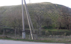 Вторая оборонительная линия защищала городище с запада и востока. Здесь проходит земляной вал, поверх которого шла каменная стена толщиной 1,65 м, а перед валом располагался ров.