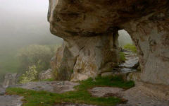 Прежде чем начать спуск в Ялту по хребту Иограф, рекомендуется чуть восточнее тропы, под обрывом пластов известняка, найти сталактитовую пещеру Иограф.